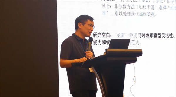随后,苏州大学陈涛教授代表苏州大学学科建设与发展规划处致辞。他简要介绍了苏州大学的悠久历史与学科特色,并以机器人与具身智能研究专家的身份,对刘民千理事长的讲话作出回应。他进一步表达了促进多学科交叉融合、推动协同创新的美好愿景,衷心感谢各位专家学者长期以来对苏州大学统计学学科的支持与帮助,并诚挚邀请统计界同仁继续予以关心和指导。
